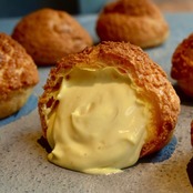サクサクのクッキーシューにカマンベールを練りこんだKAKAオリジナルのチーズカスタードをたっぷり。